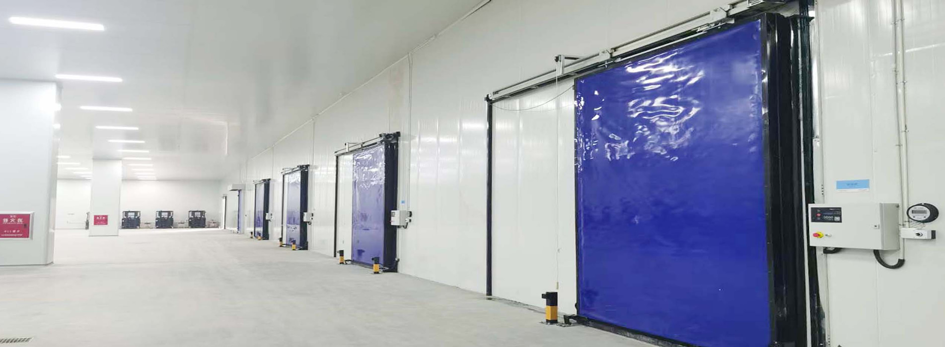 冷庫快速平移門:冷鏈庫區(qū)專用(0℃ ~ -35℃),運(yùn)行速度:0.6m/s~1.6m/s(可調(diào)節(jié))。